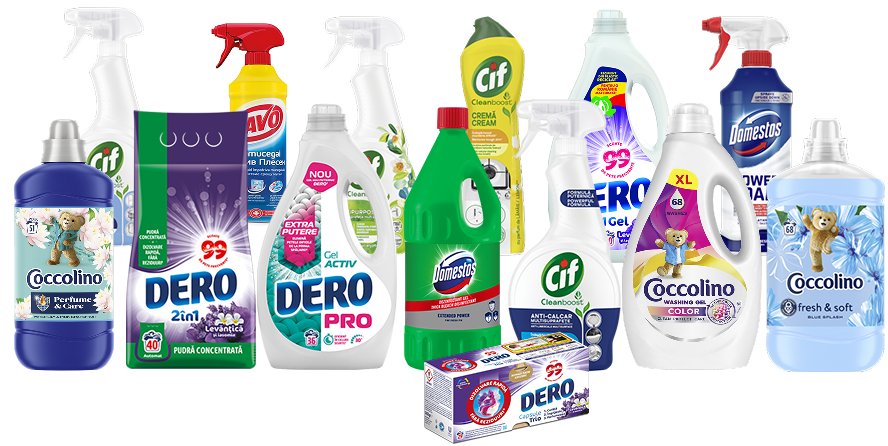 În perioada 15.05.25 – 28.05.25 cumpără produse Unilever (Dero, Coccolino, Omo, Domestos, Cif, Savo)